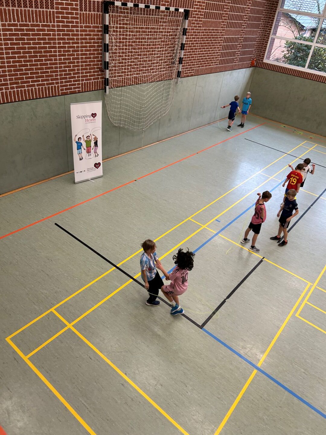 Einen tollen Workshop-Vormittag hatten die Kinder der Klassen 3 und 4. Sie lernten verschiedene Übungen mit dem Springseil und auch das große Seil kam zum Einsatz. Vielen Dank an „Skipping Hearts“.